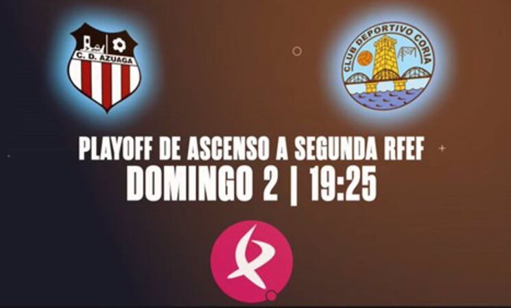 Canal Extremadura retransmitirá el próximo domingo, día 2 de junio, a partir de las 19,25 horas, el partido entre el CD Azuaga y el CD Coria que supone la ida de la final regional por el ascenso a Segunda RFEF de fútbol.