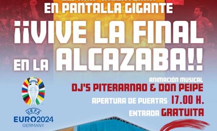 La ciudad de Badajoz contará con una pantalla gigante para seguir el partido de la final de la Eurocopa que enfrentará a la Selección Española con Inglaterra este domingo, 14 de julio, a las 21:00 horas, que podrá verse en directo en el recinto de La Alcazaba con animación previa al encuentro.