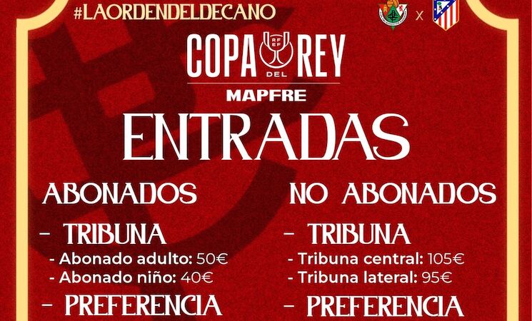Este encuentro que se disputará en el estadio Príncipe Felipe de la capital cacereña se encuentra fuera del abono, por lo que todos los abonados deberán retirar un suplemento, a excepción de los poseedores del carnet Oro. También existirá la posibilidad de retirar la promoción de la campaña de abonados especial de Copa del Rey en la tienda oficial (C/Santa Joaquina de Vedruna, n 4) y de forma online, que estará disponible hasta el domingo 1 de diciembre.