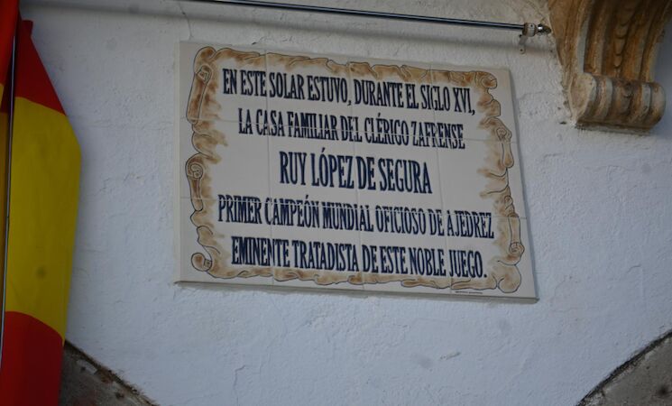 El alcalde de Zafra, Juan Carlos Fernández Calderón, ha inaugurado y descubierto una placa conmemorativa en la fachada de la que fue el hogar familiar de Ruy López de Segura, el primer campeón oficioso de ajedrez del mundo, natural y vecino de este municipio pacense.