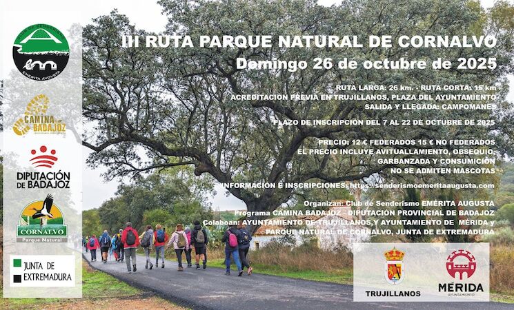 El Club de Senderismo Emérita Augusta organiza una nueva edición de la Ruta Parque Natural de Cornalvo, el domingo 26 de octubre, en el marco del Programa Camina Badajoz de la Diputación Provincial.