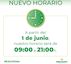 HORARIO: el horario de apertura a partir del día 1 de junio será de 09:00 a 21:00 horas. Si bien, y dada la excepcionalidad de la situación, se irá adaptando a las circunstancias cambiantes, modificaciones que, de llevarse a cabo, serán comunicadas en cada momento.