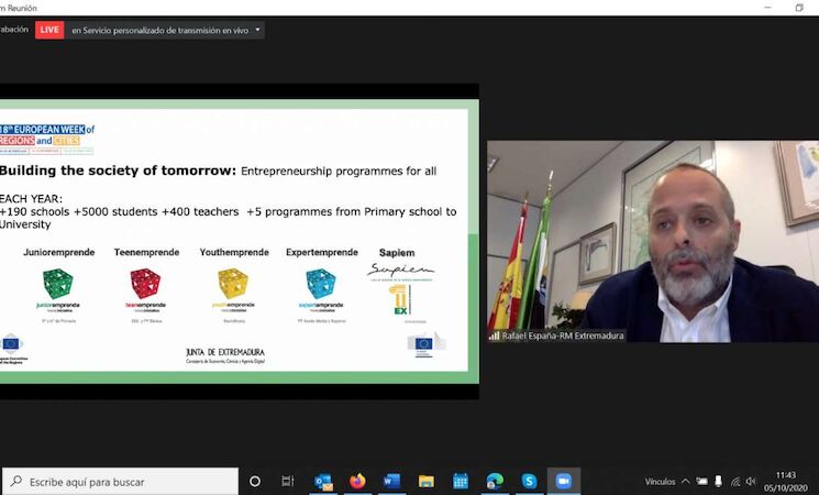 El consejero de Economía, Ciencia y Agenda Digital, Rafael España, ha participado este lunes como ponente en el seminario ‘Regions and Cities for Entrepreneurship skills’ que se ha celebrado en el marco de la Semana Europea de las Regiones y Ciudades (EWRC), siendo el evento más destacado del año en el ámbito de la política y el desarrollo regional y local a nivel europeo.