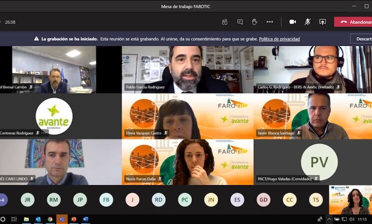 Esta sesión de trabajo, organizada por Extremadura Avante, se ha desarrollado en formato virtual y ha contado con la presencia de las entidades socias del proyecto, así como con representantes empresariales de la eurorregión, como la Asociación Empresarial Extremeña de Tecnologías de la Comunicación y la Información (AEXTIC), a los que se ha dado a conocer esta metodología de diagnóstico que tiene como fin la creación de un sector TIC más competitivo.