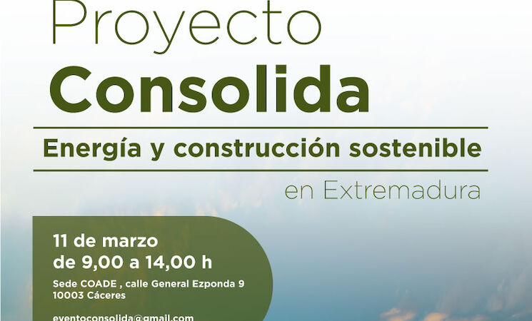 Cabe recordar que la jornada 'Proyecto Consolida' están organizadas por el Clúster de la Construcción y Afines de Extremadura, el Clúster de la Energía de Extremadura y cuenta con la colaboración del Colegio Oficial de Arquitectos de Extremadura (Coade) y la financiación de la Junta de Extremadura.