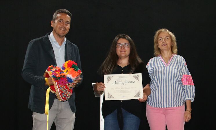 El secretario general de Economía, Empresa y Comercio, Víctor Píriz Maya, ha entregado el diploma a la Maestra Artesana a María José González Roncero, en la localidad de Montehermoso, municipio artesano ampliamente conocido por la "Gorra de Montehermoso".
