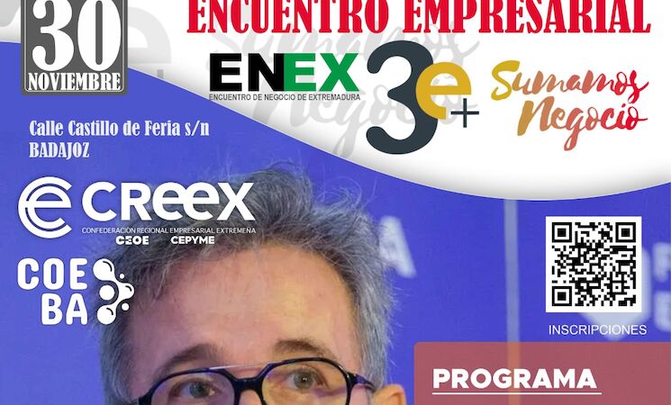 El CEO de la firma Tinámica, especializada en IA aplicada, analítica e infraestructuras de Big Data, Enrique Serrano, será el ponente en el próximo Encuentro de Negocios de Extremadura (ENEX) 3e+, que la Creex celebrará este jueves, 30 de noviembre, en su sede de Badajoz.