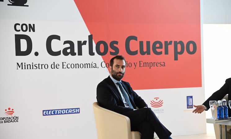 El ministro de Economía, Comercio y Empresa, Carlos Cuerpo, ha defendido que el futuro económico de Extremadura pasa por apuestas como la gigafactoría de baterías de Navalmoral de la Mata y en torno a sectores e industrias estratégicas, así como por la digitalización o la introducción de tecnologías punteras también en otros sectores que puedan ser más tradicionales, como el agrícola. "Por ahí es por donde va a pasar, sin ninguna duda, el futuro de Extremadura".