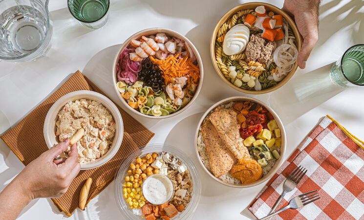 En cuanto al poke de pollo, está compuesto por arroz cocido, pollo, garbanzos, queso blanco, maíz, boniato, mezcla de semillas y salsa yogur. Por otro lado, el salmón marinado viene acompañado de salsa romescu, arroz y verduras asadas (calabacín, patata, pimiento rojo y boniato), y la ensalada de marisco ofrece pasta, potón, cebolla roja encurtida, gambón, langostino cocido, vinagreta, zanahoria encurtida y aceituna negra. Son platos listos para comer, con un formato que facilita su consumo en cualquier momento.
