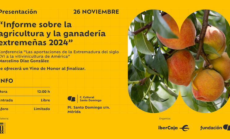Este próximo miércoles, 26 de noviembre, a las 12:00 horas, en el Centro Cultural Santo Domingo de Fundación CB, en Mérida, tendrá lugar el acto en el que se presentará el "Informe sobre la agricultura y la ganadería extremeñas 2024".