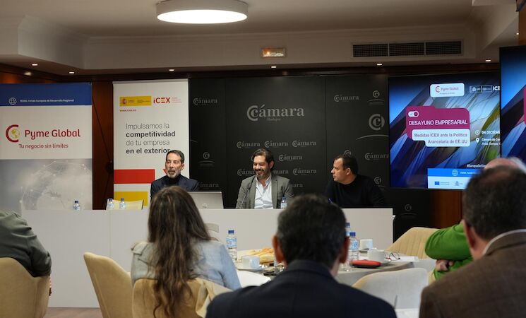 La Cámara de Comercio de Badajoz ha celebrado este jueves, día 4, el desayuno empresarial 'Medidas ICEX ante la Política Arancelaria de EE.UU', un encuentro dirigido a empresas exportadoras y organizado en colaboración con ICEX España Exportación e Inversiones y la Dirección Territorial de Comercio en Extremadura, con 25 asistentes.