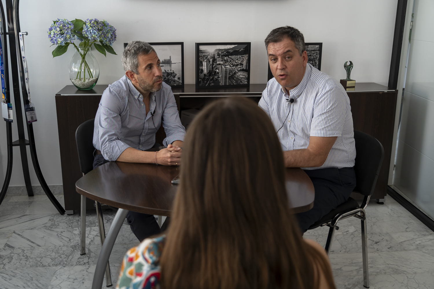 Juan Blanco (izquierda) y Pedro Casas (derecha) durante la entrevista con Regiondigital.comRecientemente han lanzado toda la zona de Parqueadero de la ciudad de Bogotá, lo que es en España la zona azul de aparcamiento. "En Bogotá no tienen los parquímetros para pagar por lo que realizan el pago a través de una app y también se hace a través de Whatsapp con QR y el mismo proceso para realizar una reserva de plaza", explica Pedro Casas.
