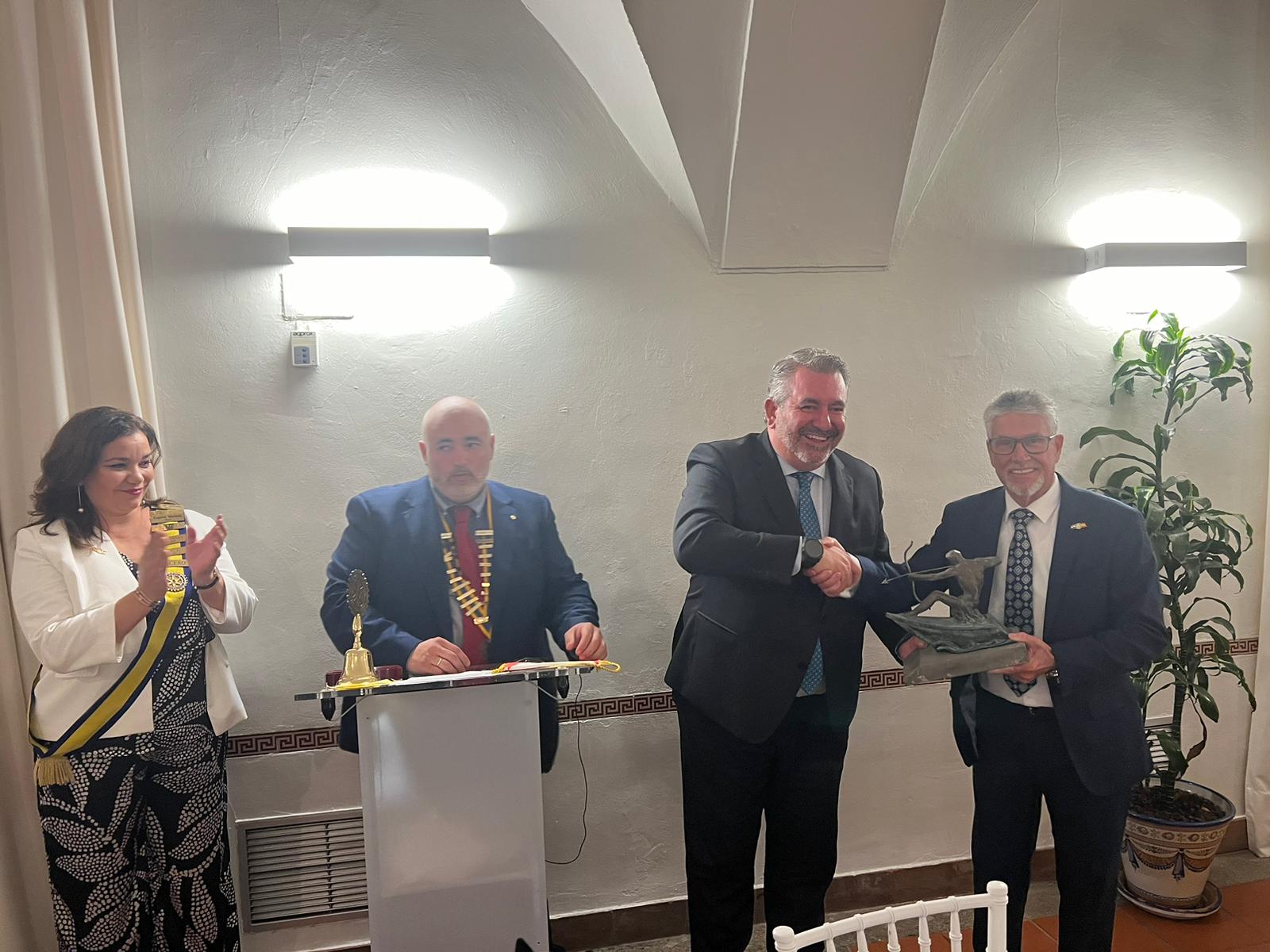 El director del Parador recoge el Premio José Manuel Remedios, actual presidente del Club Rotary Mérida, fue el encargado de pronunciar la laudatio de méritos al galardonado, destacando entre otros datos que El inicio del proyecto del Parador de Mérida, se remonta a un encargo del Rey Alfonso XIII al entonces, Comisario Régio de Turismo, el Marqués de la Vega-Inclán.