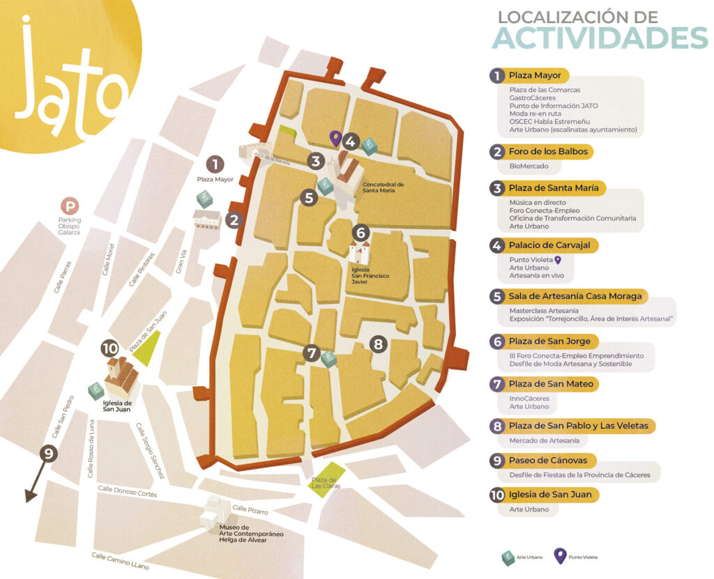 Precisamente, la edición 2024 de JATO, cuya inauguración está prevista para este viernes, a las 10:30 horas, en el Foro de los Balbos, contempla un total de 13 tipos de actividades que engloban desde el III Foro Conecta-Empleo: Emprendimiento, pasando por GastroCáceres, InnoCáceres, Plaza de las Comarcas, Artesanía en vivo, Desfile de moda y sostenible, Biomercado, Hablamus Estremeñu, Mercado de Artesanía, Arte Urbano, Música en directo, Remudarte y un Desfile de Fiestas de la provincia de Cáceres en el que participan 27 eventos, de los que 15 son Fiesta de Interés Turístico.