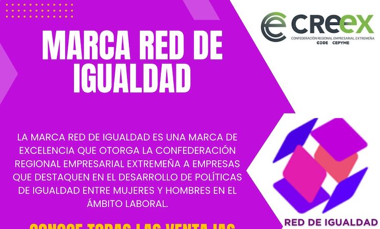 La Marca RED DE IGUALDAD, creada por la Confederación Regional Empresarial Extremeña (CREEX), representa mucho más que un logotipo o un distintivo. Es un símbolo de excelencia y compromiso con la igualdad de género, diseñado para reconocer a las empresas que adoptan medidas reales y efectivas en sus políticas laborales.