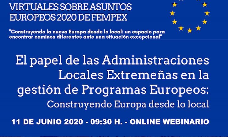 La Federación de Municipios y Provincias de Extremadura (Fempex) analizará en un seminario virtual el papel que deben jugar las Administraciones Locales en la reconstrucción de la nueva Europa surgida tras la crisis de la Covid-19.