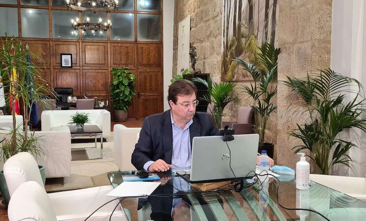 El presidente de la Junta de Extremadura, Guillermo Fernández Vara, ha puesto en valor este miércoles la calidad de los productos de Extremadura, durante su participación, de manera virtual, en la proclamación de ganadores de la XXI edición del Premio Espiga Jamón D.O. “Dehesa de Extremadura” y de la V edición del Premio Espiga Cava de Extremadura, organizados por Caja Rural de Extremadura y en la que también ha participado la consejera de Agricultura, Desarrollo Rural, Población y Territorio, Begoña García Bernal.