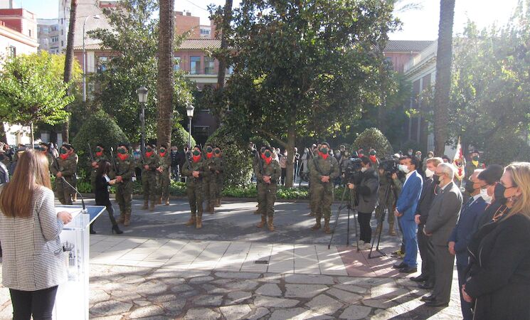 En el acto de homenaje a la Constitución ha participado también la sección de honores y la banda de guerra de la Brigada Extremadura XI, que ha sido la encargada de interpretar el himno nacional durante el izado de la bandera. Antes del comienzo del homenaje se ha guardado además un minuto de silencio por todas las víctimas causadas por la Covid-19.