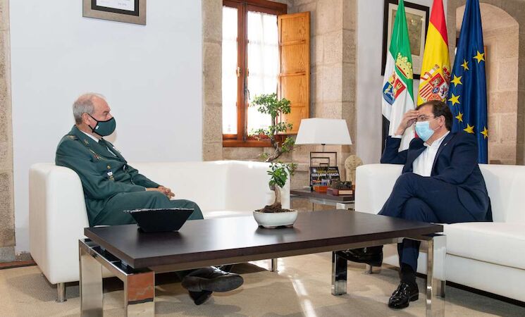 El presidente de la Junta de Extremadura, Guillermo Fernández Vara, se ha reunido este viernes, en Mérida, con el general de brigada del cuerpo de la Guardia Civil, Tomás García Gazapo.