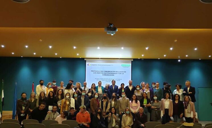 Alrededor de 50 personas se han dado cita este viernes en la Biblioteca Pública Jesús Delgado Valhondo de Mérida, en una reunión de trabajo en la que se ha presentado el Protocolo de Comunicación Inclusiva en los ámbitos institucionales y de la comunicación.