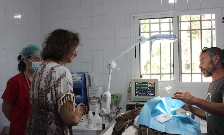La consejera para la Transición Ecológica y Sostenibilidad, Olga García, ha visitado el Hospital de la organización Acción por el Mundo Salvaje (AMUS) en Villafranca de los Barros, acompañados del personal de la entidad.