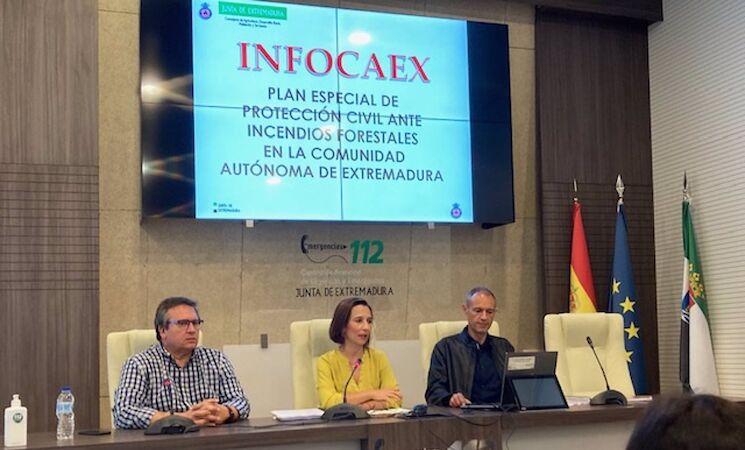 Este documento ha sido presentado este viernes por la directora general de Emergencias, Protección Civil e Interior, Nieves Villar, tras ser aprobado por el Consejo de Gobierno de la Junta. Hasta este momento, la actuación en emergencias por incendios se realizaba enmarcada en el plan general de protección civil (Platercaex), actualizado en 2019, y ahora pasará a ser gestionada por este nuevo plan.