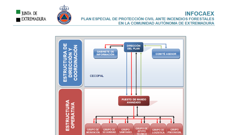 Asimismo, en el Infocaex se define la operatividad del plan, sus fases y procedimientos de actuación en caso de que se declare un incendio.