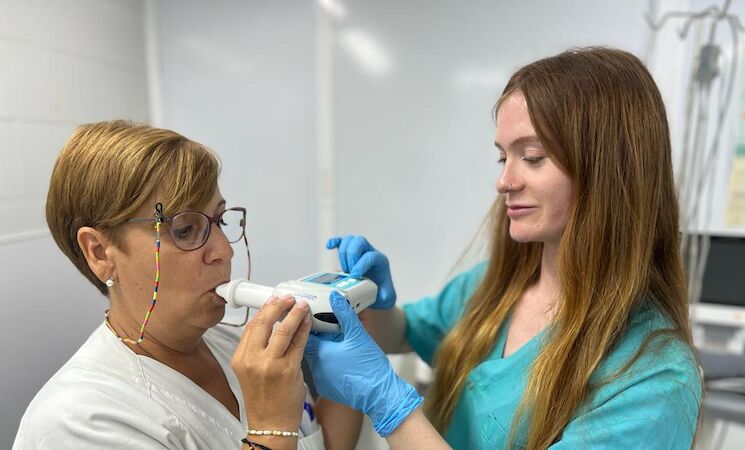 Durante la espirometría, que es realizada habitualmente por el equipo de enfermería, el paciente debe soplar fuerte y rápido a través de un dispositivo con el que se consiguen las mediciones a través de un equipo que arrojará unos resultados con los que el facultativo podrá diagnosticar posibles enfermedades respiratorias como el asma o la enfermedad pulmonar obstructiva crónica (EPOC).