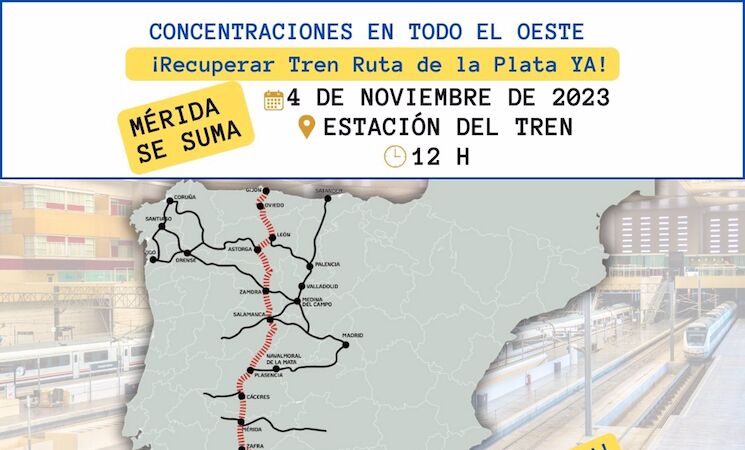 Así pues, las entidades convocantes son Corredor del Oeste, la Plataforma Extremeña del Tren que Vertebre el Territorio y Enfríe el Planeta y el Movimiento Tren Ruta de la Plata, que instan a los ayuntamientos entre Sevilla y Gijón que se unan a esta reivindicación mediante acuerdos plenarios y concentraciones ciudadanas a las 12:00 horas del mediodía.