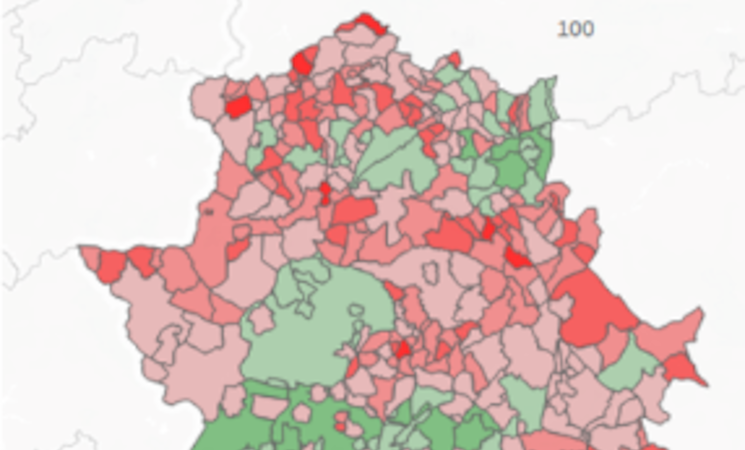 Finalmente, en el 42,3 por ciento de los municipios el retroceso ha sido superior al del conjunto de Extremadura (65 municipios de Badajoz y 99 de Cáceres).