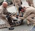 Instructores de la Brigada 'Extremadura' XI forman durante estos días en la Base General Menacho de Bótoa (Badajoz) a militares ucranianos en el mantenimiento del vehículo de Transporte Oruga Acorazado (TOA)
