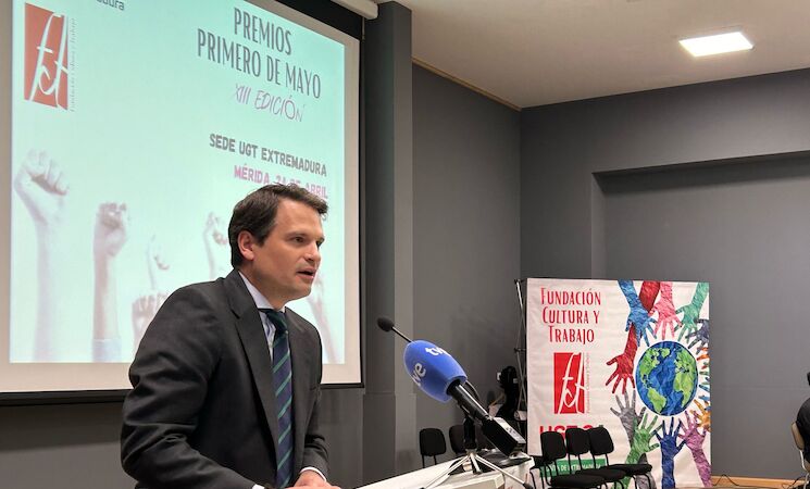 El titular extremeño de Diálogo Social ha hecho estas declaraciones en la entrega de la XIII edición de los Premios 1º de Mayo, otorgados por la citada organización sindical, donde ha informado que el Ejecutivo extremeño está trabajando de la mano de los agentes sociales y económicos en la creación de comisiones sectoriales en el seno del Consejo de Concertación Social y Económica de Extremadura.
