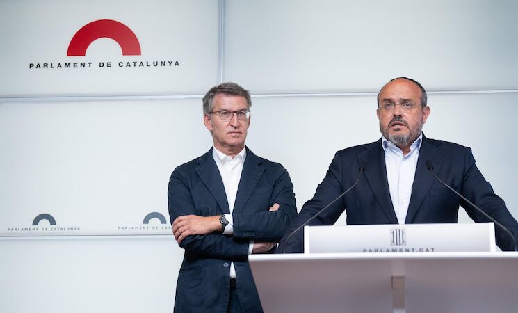 Así se ha pronunciado Feijóo en una rueda de prensa en el Parlamento de Cataluña, tras reunirse con diputados del grupo parlamentario en Cataluña y miembros de la dirección del partido, al ser preguntado por las declaraciones del presidente de Vox, Santiago Abascal, advirtiendo de que considerarán "rotos" todos los pactos autonómicos con el PP si desde los gobiernos autonómicos en los que participan no utilizan "todos los medios políticos y legales" para evitar la distribución de menores migrantes.