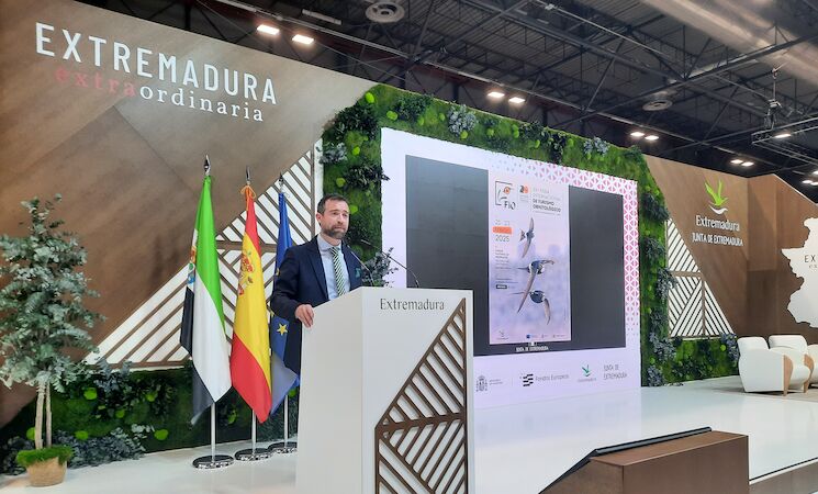El director general de Turismo, Jesús Viñuales, ha presentado este miércoles en FITUR la 20ª edición de la Feria Internacional de Turismo Ornitológico (FIO), que se celebrará del 21 al 23 de febrero en el Parque Nacional de Monfragüe, y ha anunciado los ganadores del concurso fotográfico 'Las Aves Silvestres'.