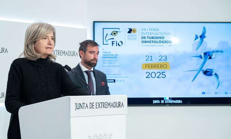 "Este 2025 celebramos un hito importante: dos décadas en las que FIO ha crecido hasta convertirse en la feria decana del turismo ornitológico en España y la segunda más importante de Europa", ha subrayado la consejera de Cultura, Turismo, Jóvenes y Deportes, Victoria Bazaga, durante la presentación de este certamen este miércoles en Mérida.