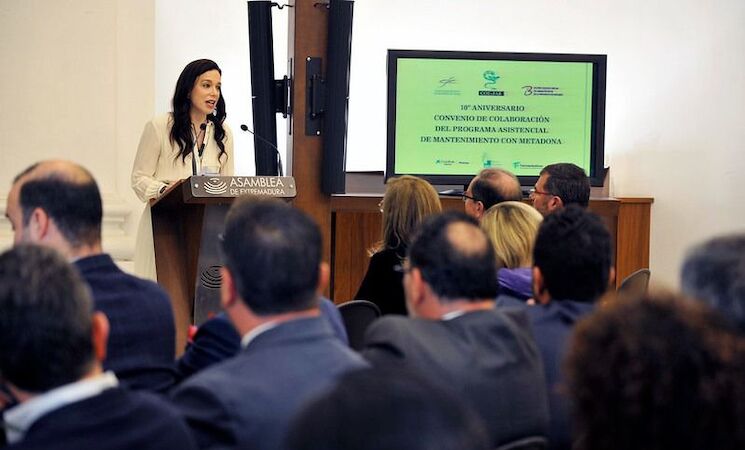 La consejera ha recordado que la firma del primer convenio de colaboración entre el Servicio Extremeño de Salud (SES) y los Colegios Oficiales de Farmacéuticos de Cáceres y Badajoz en 2015, permitió la dispensación de metadona en oficinas de farmacia, "acercando así el tratamiento al entorno cotidiano de los pacientes".