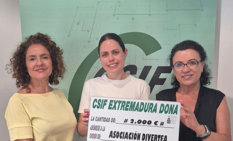 CSIF en Extremadura ha donado un cheque solidario de 2.000 euros a la asociación 'Divertea', que ayuda a personas con autismo y a sus familiares.