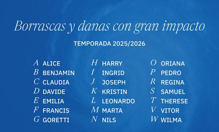 Para el nombramiento se empleará una lista prefijada y acordada entre todos los países del grupo compuesta por 21 nombres que alterna masculinos y femeninos. La primera borrasca o dana con gran impacto llevará el nombre de Alice.