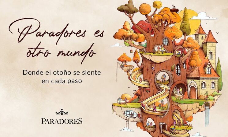 Por último, la imagen de marca de la campaña de otoño vuelve a ser obra de Oscar Llorens, bajo el título 'Paradores es otro mundo. Donde el otoño se siente a cada paso'. La ilustración dibuja un mundo imaginario que brota de un gran árbol repleto de actividades como paseos, ciclismo, senderismo o gastronomía.