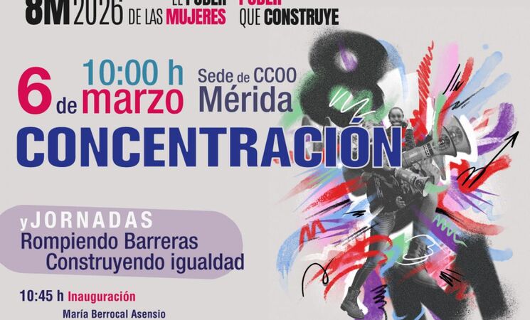 CCOO de Extremadura ha convocado una concentración este viernes, 6 de marzo, en Mérida, para reivindicar el poder de las mujeres frente a las discriminaciones y la amenaza que supone el "discurso reaccionario" ante los avances logrados en los últimos años.