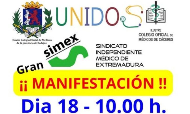 El Sindicato Independiente Médico de Extremadura (Simex), con el apoyo del Colegio de Médicos de Cáceres y el de Badajoz ha convocado una nueva manifestación para el miércoles, 18 de marzo, a las 10:00 horas, en Cáceres y Badajoz, para reclamar un estatuto marco propio y mejoras laborales.