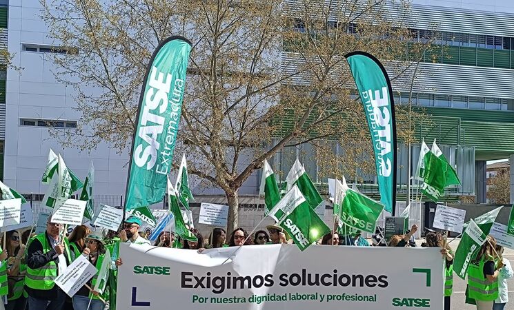 Enfermeras y fisioterapeutas se han concentrado este lunes, día 23, frente a los servicios centrales del SES en Mérida para reclamar a las administraciones que sean "corresponsables" y garanticen su derecho a conciliar.