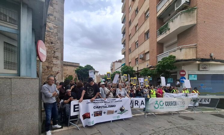 Un centenar de personas se concentran esta tarde frente a la Asamblea de Extremadura, en Mérida, en defensa de la cooperación, al mismo tiempo que la candidata a la Presidencia de la Junta, María Guardiola, ofrece su discurso en el debate de investidura que se celebra en la Cámara regional.