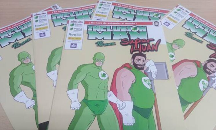 El material de difusión para la campaña es el cómic 'Inclusión Man' ha sido creado por el taller de diseño de Plena Inclusión Montijo. En él se presenta el primer héroe con discapacidad intelectual que tiene el poder de la inclusión, Súper Huan.