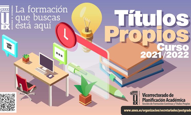 La Universidad de Extremadura (UEx) ha lanzado una nueva oferta de títulos propios para el curso 2021/22, compuesta por 21 masteres propios, 10 cursos de especialista universitario y 8 cursos de experto profesional, además de varios cursos de formación a profesionales y empresas de menor duración.
