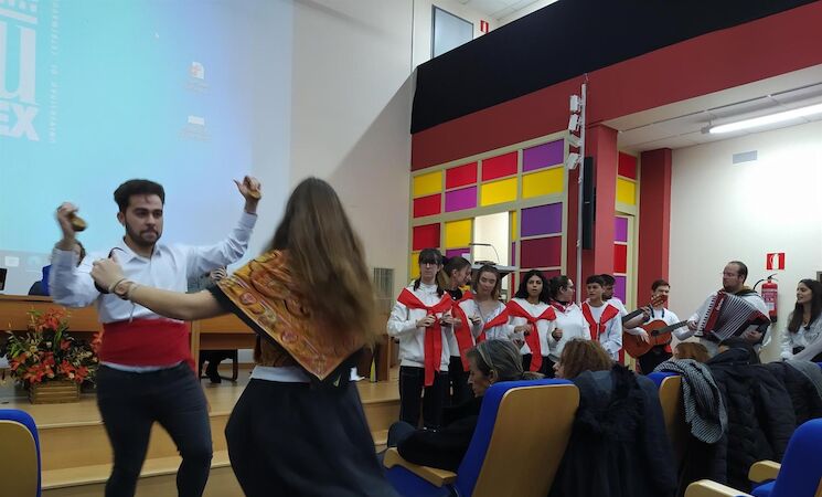 El acto se ha iniciado con una actuación musical y de baile a cargo de estudiantes de 4º del Grado en Educación Primaria. El decano, David González, ha disculpado su ausencia tras infectarse de Covid-19, por lo que el acto ha estado presidido por la vicerrectora de Estudiantes, Empleo y Movilidad y profesora del centro, Rocío Yuste.