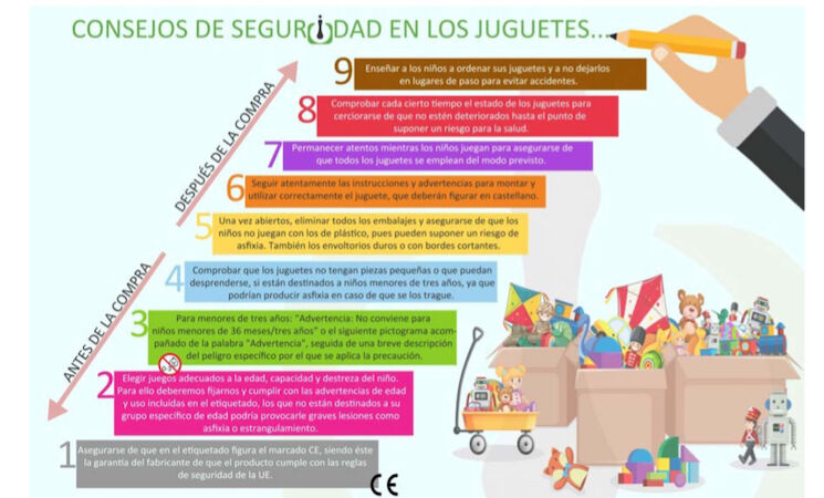 También recomienda seguir atentamente las instrucciones y advertencias para montar y utilizar correctamente el juguete, que deberán figurar en castellano, y permanecer atentos mientras los niños juegan para comprobar que todos los juguetes se emplean del modo previsto.