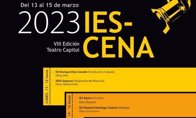 La octava edición del Festival IESCena se celebrará en el Teatro Capitol de Cáceres del 13 al 15 de marzo con la participación de seis compañías teatrales de institutos de Badajoz, Cáceres, Puebla de la Calzada, Malpartida de Plasencia y Almendralejo.