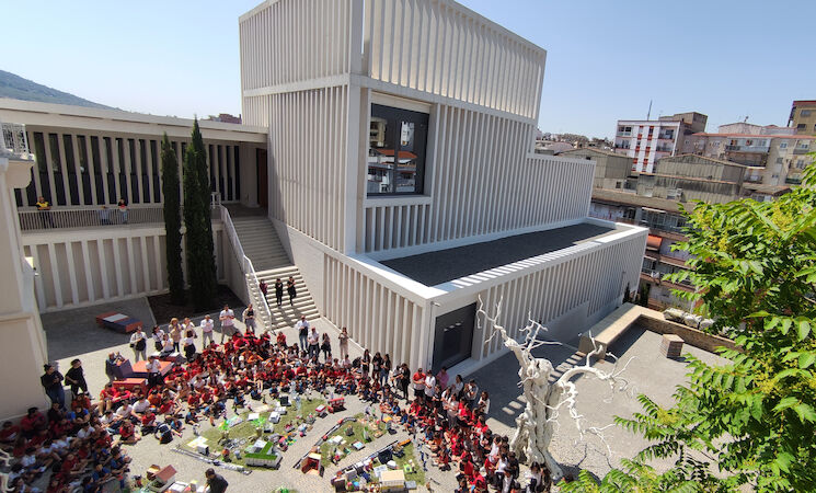 Así pues, la acción, titulada 'Construyendo la ciudad sostenible', ha contado con la participación de los alumnos, alumnas y el profesorado quienes han ocupado los jardines del Museo portando los diferentes elementos urbanos con los que construir su instalación.