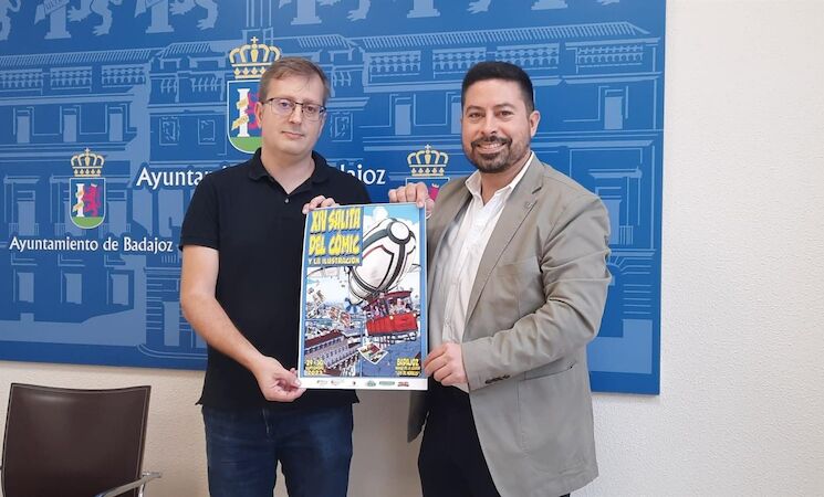 El concejal de Cultura del Ayuntamiento de Badajoz, José Antonio Casablanca, y el representante de la Asociación de amigos del cómic de Extremadura, Extrebeo, que organiza este evento, Carlos Díaz, han presentado esta nueva edición que se desarrollará por tercer año en Badajoz.